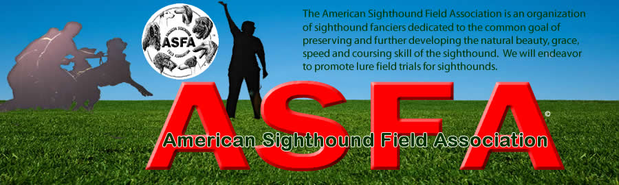 The American Sighthound Field Association was founded in 1972. Since then the ASFA has been promoting the sport of lure coursing throughout the US. We are proud to be the first nationally known association for lure coursing. In the sport of lure coursing we do not chase live game, we use a plastic bag on a string powered by motors. The hounds love to “hunt” the plastic bag. You need only to see the speed, enthusiasm, ability, follow and endurance expressed by these wonderful sleek hounds to become hooked on the sport of lure coursing. ASFA sponsored lure coursing trials are held on most weekends throughout the year, usually in multiple locations arounds the country. You can find clubs in your area by clicking on your state on the map on this page. A schedule of events can be found by clicking on the “Field Trials” button above. ASFA field trials can offer you, your family and your sighthound a day of great fun. Try ASFA. You can be assured you will not regret learning more about lure coursing. Thank you for exploring our organization and web site.