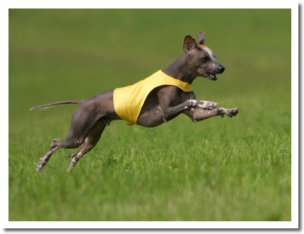 The Peruvian Inca Orchid is a hairless sight hound native to South America. He is trim, fast and graceful; much like a deer in structure and movement. The PIO is reserved with strangers at first and needs early socialization. He is independent yet easy to live with, gets along with other dogs and is usually good with children. If a light skinned variety, he needs protection from cold and sun though he is hardy. The hairless have upright ears while the coated have drop ears. All colors are allowed but white or pink background with colored spots is preferred. |