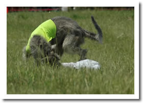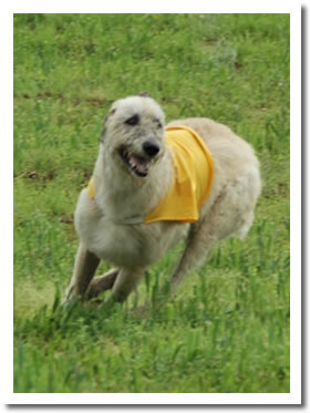 Because of his great size and the amount of exercise essential to his well-being, the Irish Wolfhound is not a dog to be acquired without serious fore-thought. His ideal home is one which provides fenced property of sufficient size to accommodate the galloping natural to this athletic sight hound. Hunting by sight and chase is what he was bred and historically used for; the length of leg and back, the deep chest, the power of his limbs and body attest to the heritage and needs of the Irish Wolfhound.