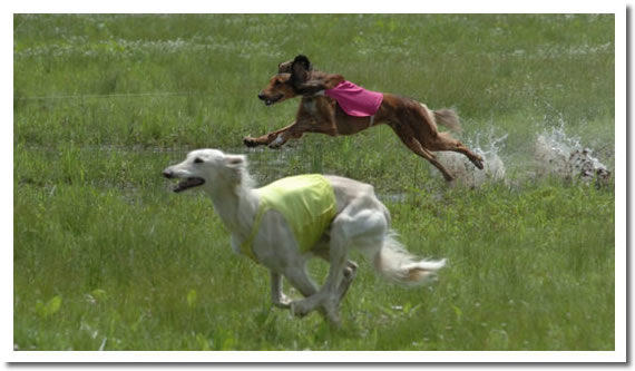 On his native heath the Saluki gets no pampering. He lives hard, and it is a case of survival of the fittest--one reason for his strong constitution and sturdy frame, enabling him to stand any cimate in unheated kennels. His feet are hard and firm, and the hair between the toes is a great protection. In all his running and dodging over the roughest kind of ground and rocky country, he never damages pads or toes. |